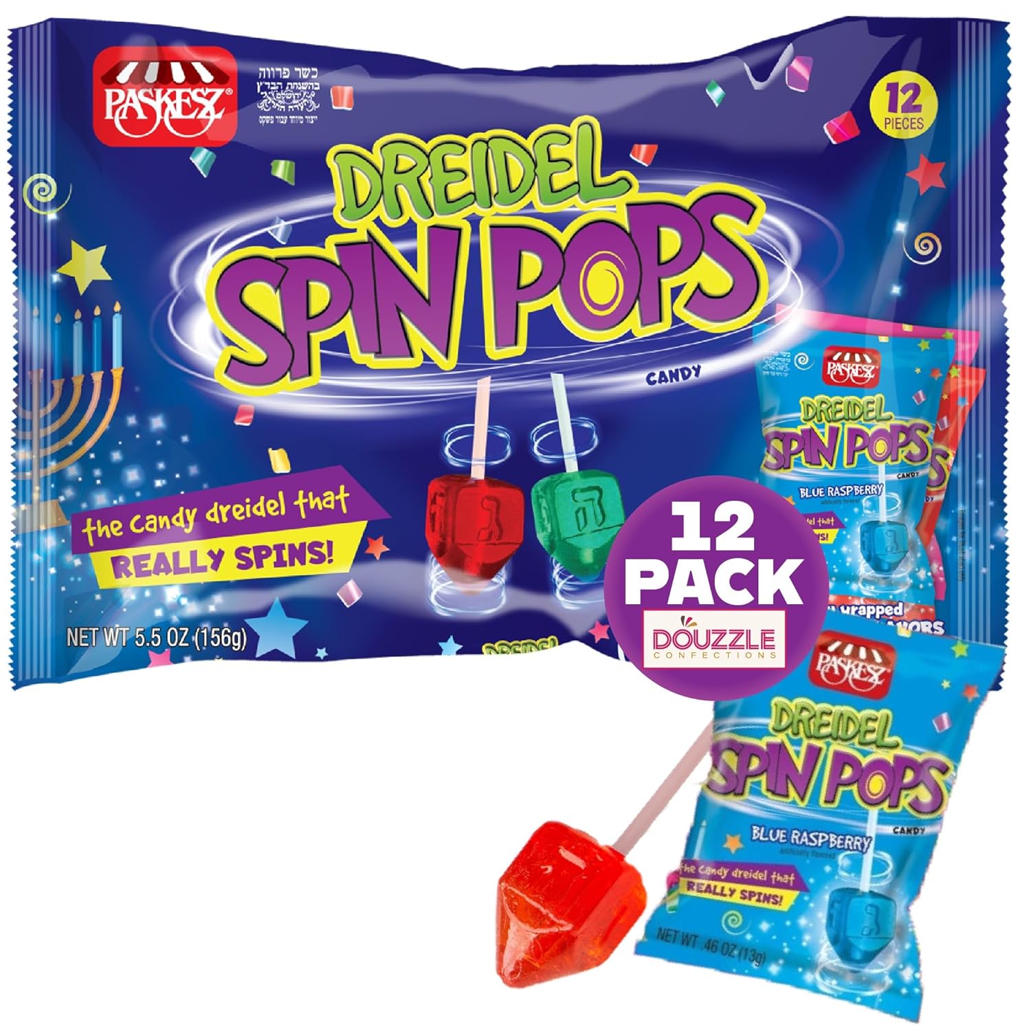 DOUzzle Hanukkah Candy Dreidels for Kids, Dreidel Spin Pops, Individually Wrapped Assorted Fruity Flavors (Pack of 1) Hanukah Party Favors, Happy Chanuka Sweet Treat & Gifts - Kosher Parve.