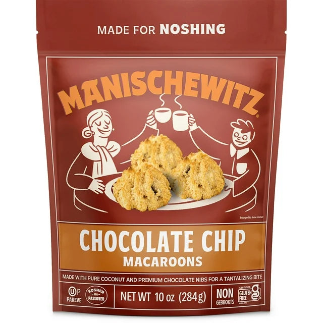 Manischewitz Chocolate Chip Macaroons, 10oz Resealable Bag, Gluten Free, Kosher For Passover.