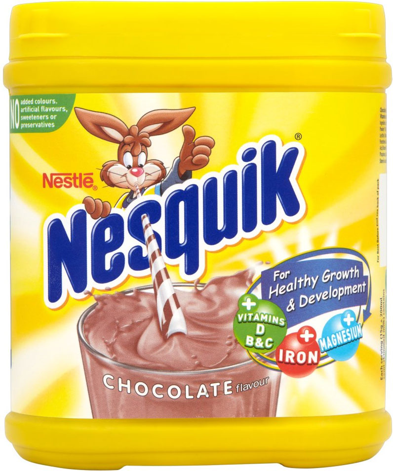 Nesquik Chocolate Flavored Powder provides calcium, 8 grams of protein, and 7 essential vitamins and minerals when combined with low-fat milk. It's a great way to kick off the day deliciously.